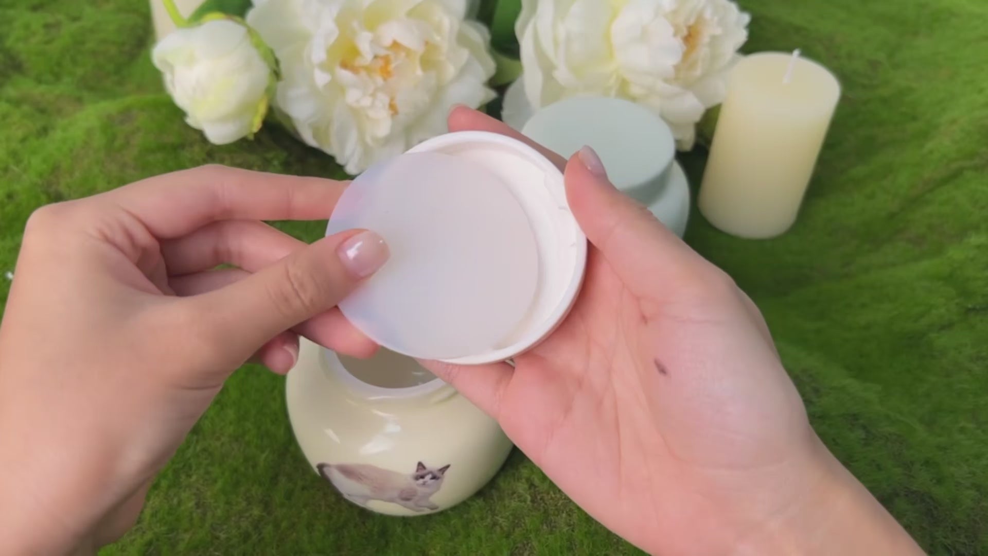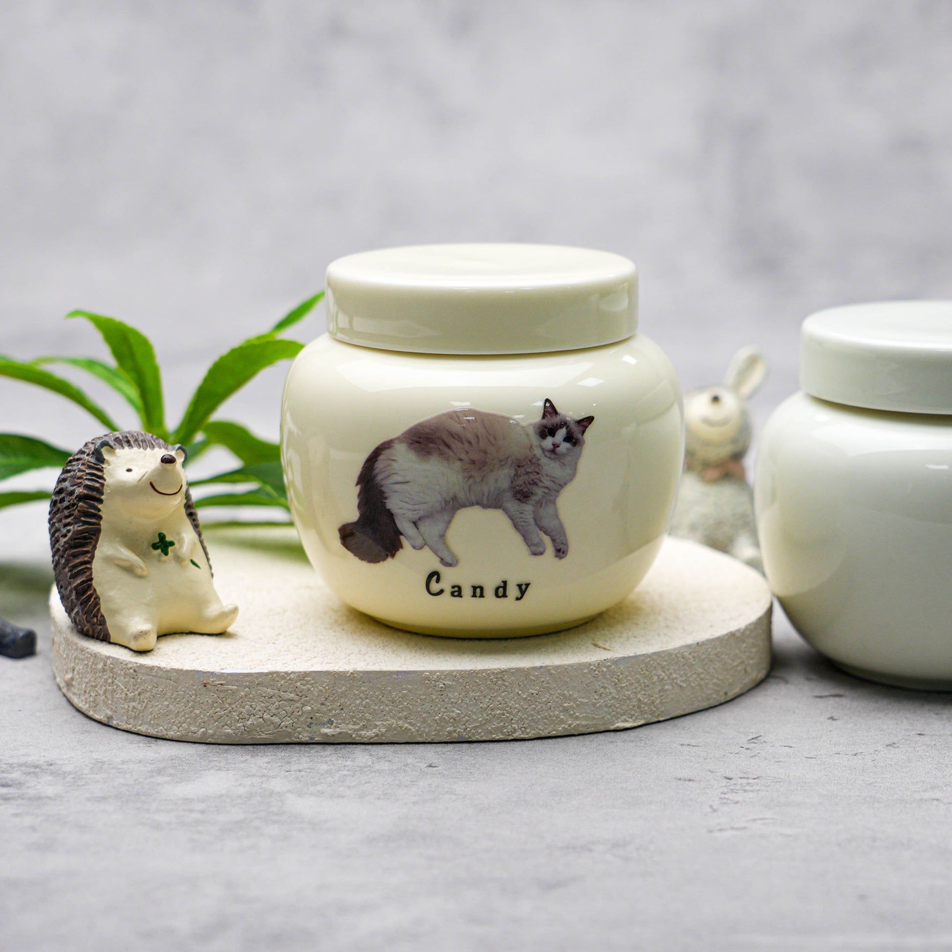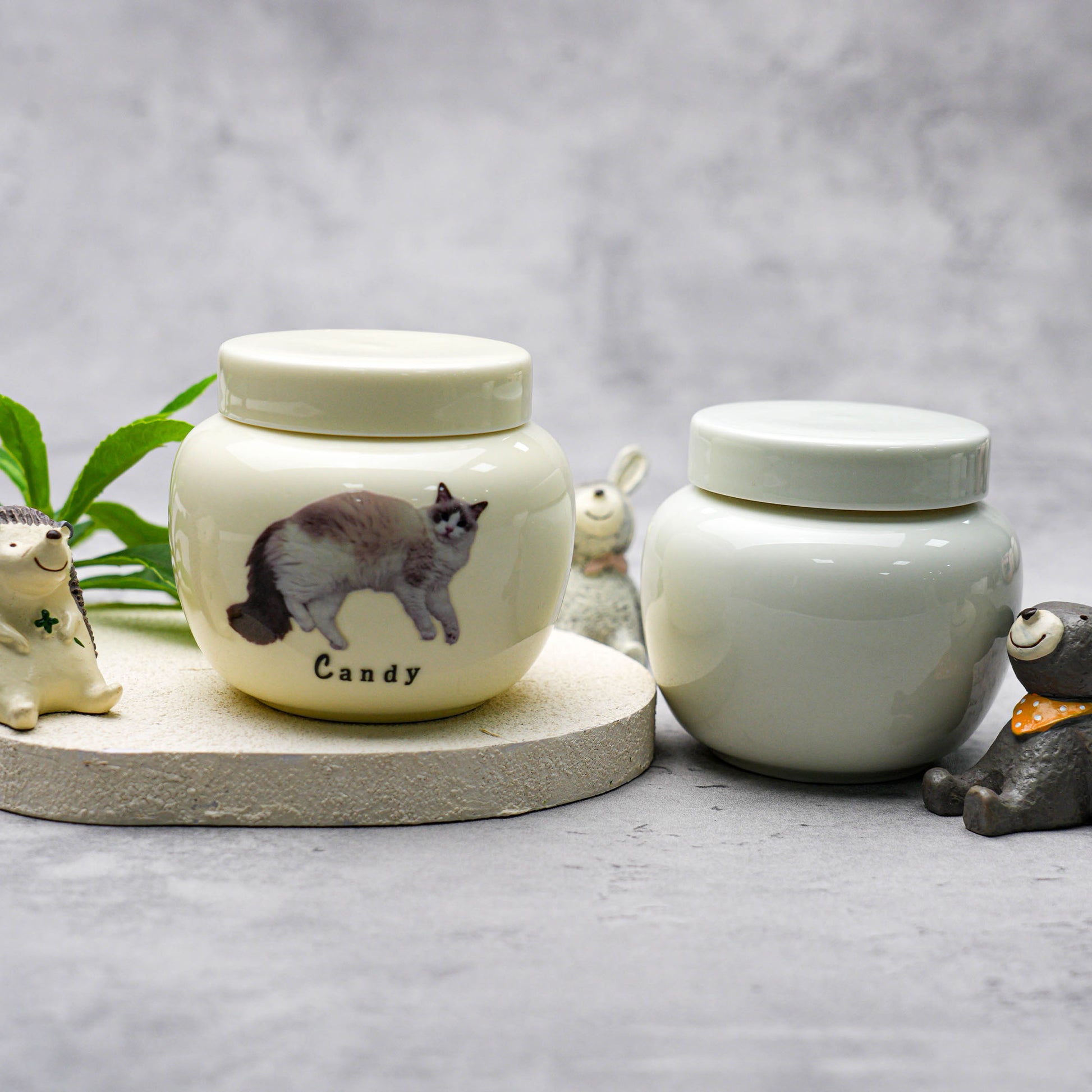 This ceramic pet urn can be customized with your pet's photo and name. Its smooth glaze finish, paired with a twist-top lid and silicone seal, creates a secure, moisture-proof closure—perfect for storing ashes or small keepsakes like fur.