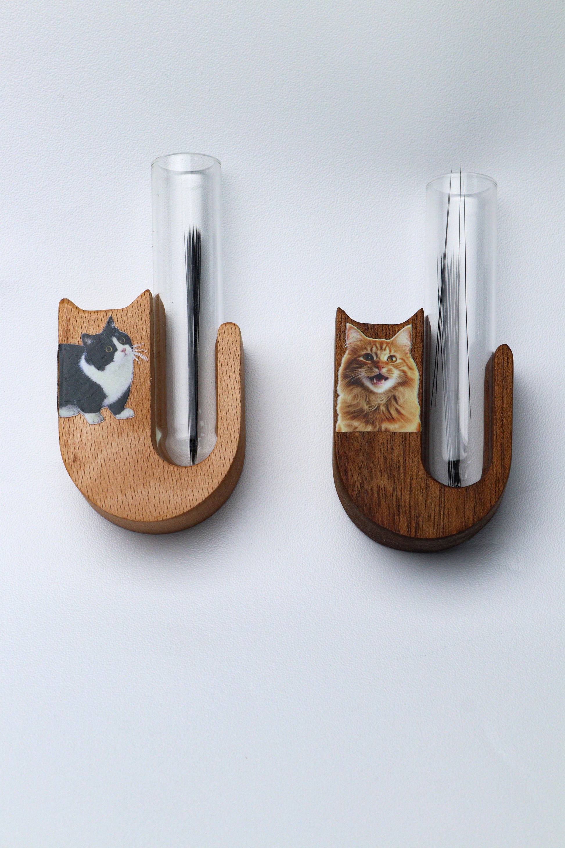 This unique handmade wooden whisker holder is designed not just to store your cat’s whiskers, but to feature your cat’s very own portrait on it. Every piece becomes a one-of-a-kind keepsake that keeps your beloved kitty close, forever.