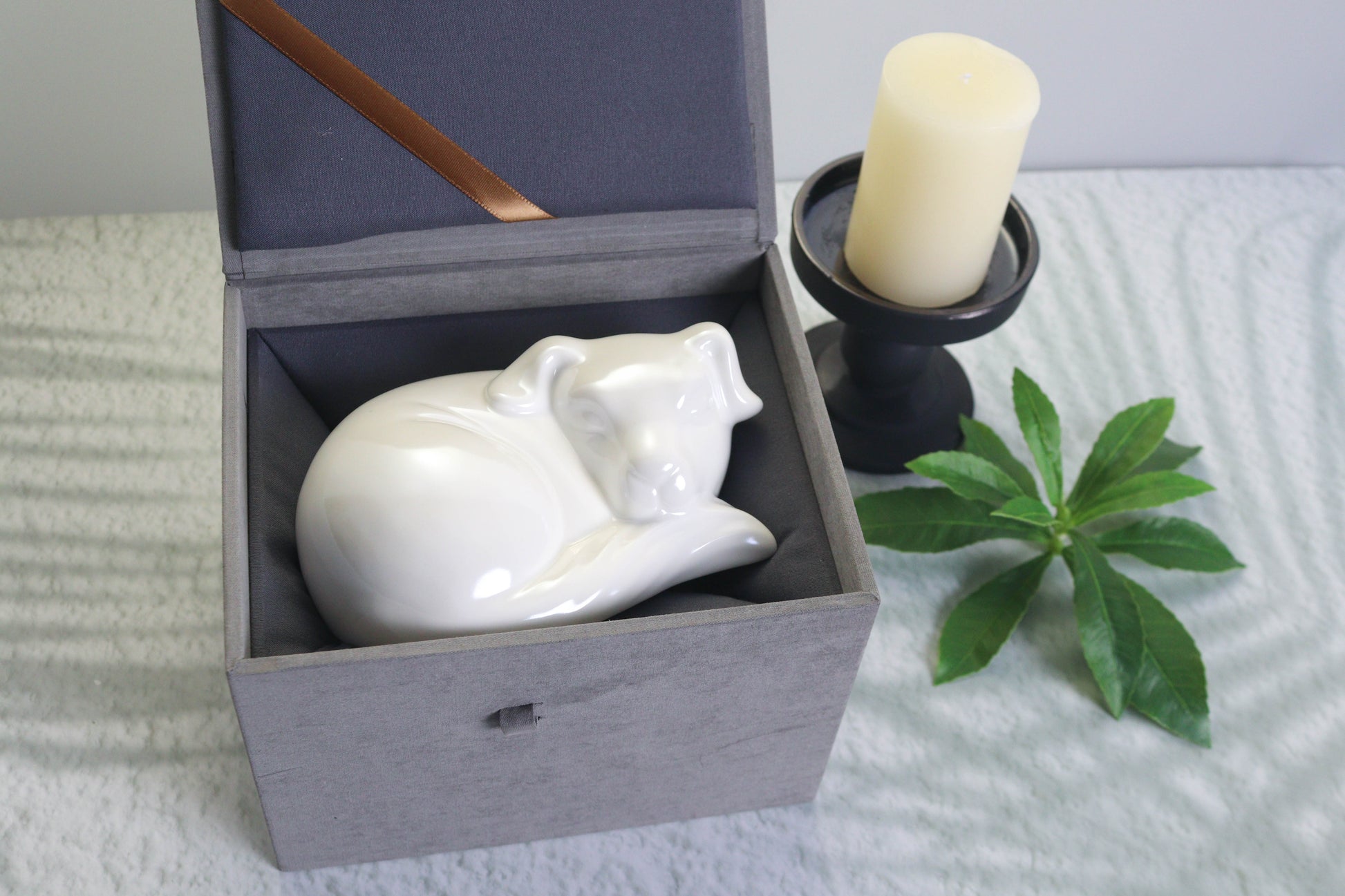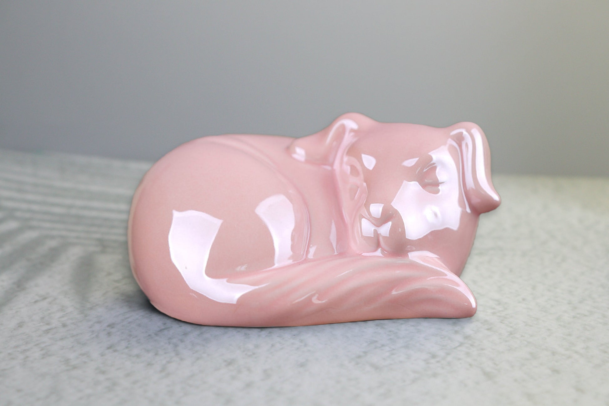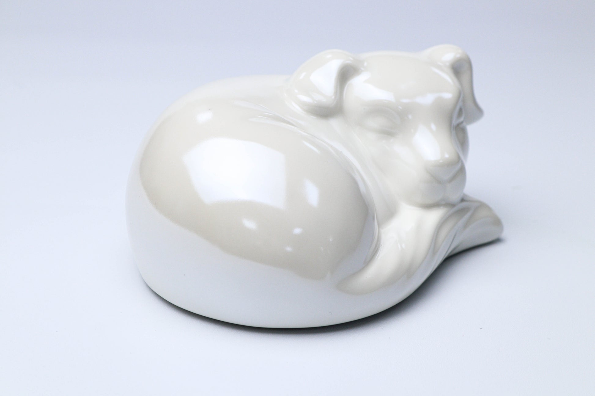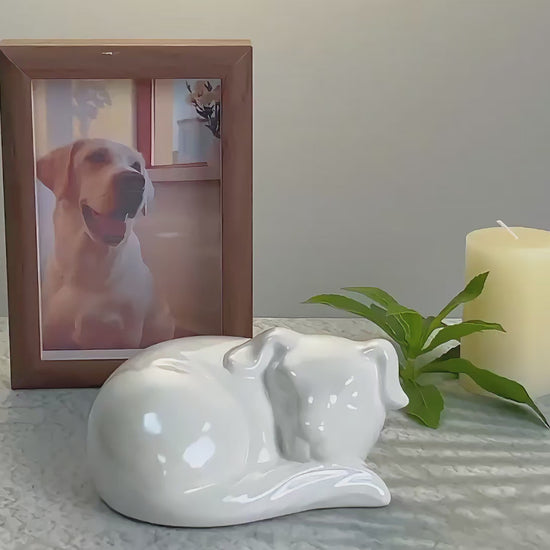 Keep your beloved pet by your side forever in a serene and elegant way. This ceramic urn, shaped like a sleeping dog, seamlessly blends into any home decor while serving as a timeless memorial.