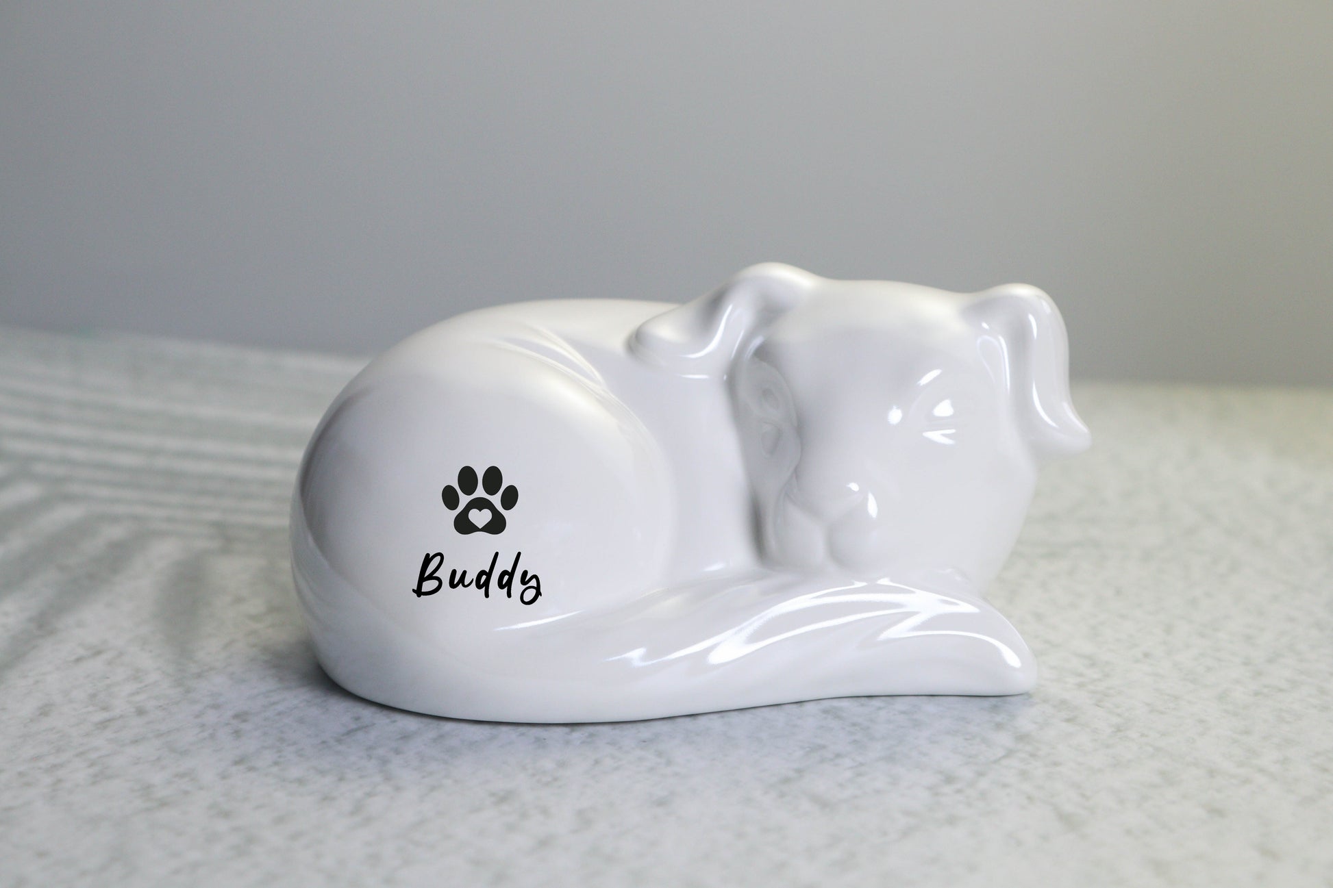 Personalized Dog-Shaped Cremation Urn with Paw Print